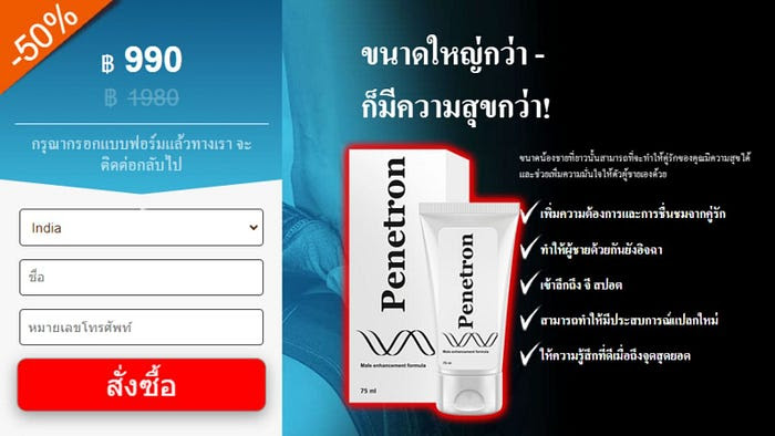Penetron เป็นเจลจากธรรมชาติที่ช่วยให้คู่รักทั้งสองฝ่ายได้รับความพึงพอใจในระดับสูงระหว่างมีเพศสัมพันธ์ ยาออร์แกนิกเพื่อความสุขในห้องนอนที่ใช้ร่วมกันเป็นหนึ่งในสารกระตุ้นความใคร่ที่ขายเร็วที่สุดใน Thailand มีการเผยแพร่ผลิตภัณฑ์เพื่อการเสริมสมรรถภาพทางเพศประมาณ 3,000,000 สำเนาผ่านทางเว็บไซต์อย่างเป็นทางการแล้ว ราคามีราคาไม่แพงกว่ายาเม็ดสีฟ้าในร้านขายยา บทวิจารณ์และคำรับรองของ Penetron ในฟอรัมแสดงให้เห็นว่าผลิตภัณฑ์ช่วยเพิ่มการไหลเวียนของเลือดไปยังกระดูกเชิงกรานและช่วยให้คุณถึงจุดสุดยอดไปพร้อมๆ กัน ไม่มีอาการของข้อห้าม